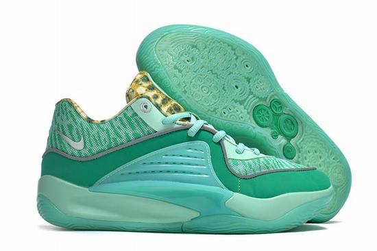 Kevin Durant 16th signature shoe adopts a similar pattern to KD 14 vamp in that the textured multilayer mesh extends over the forefoot and heel, and the mid-foot TPU covering system has porous ventilation on both the outside and inside, and is integrated with the split midsole of the forefoot. The overall design language continues the smooth, streamlined structure of the KD series, the heel is likely to be equipped with Zoom Air cushion, KD\’s personal Logo is placed on the tongue label, and the Swoosh of this generation of signature shoes is retained in the collar similar to the Air Max 95. The KD 16 will feature a low top design, knitted upper and side ventilation design. The upper is equipped with multi-layer mesh cloth, and the light and comfortable sole is integrated into the Air front foot Zoom Air cushioned configuration, bringing cushioned effect and comfortable foot feeling. The full palm foam has outstanding rebound, and the foot feels soft and comfortable. The hard design under the arch is adopted to help stabilize the shoe body. The ultra-wear-resistant rubber sole is designed with grooves and embossed design, which has a strong multi-directional grip and a good sense of adhesion.